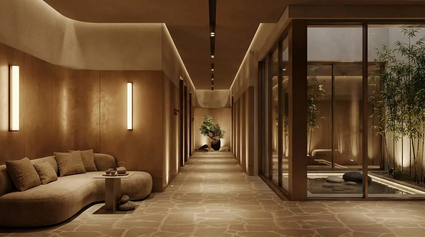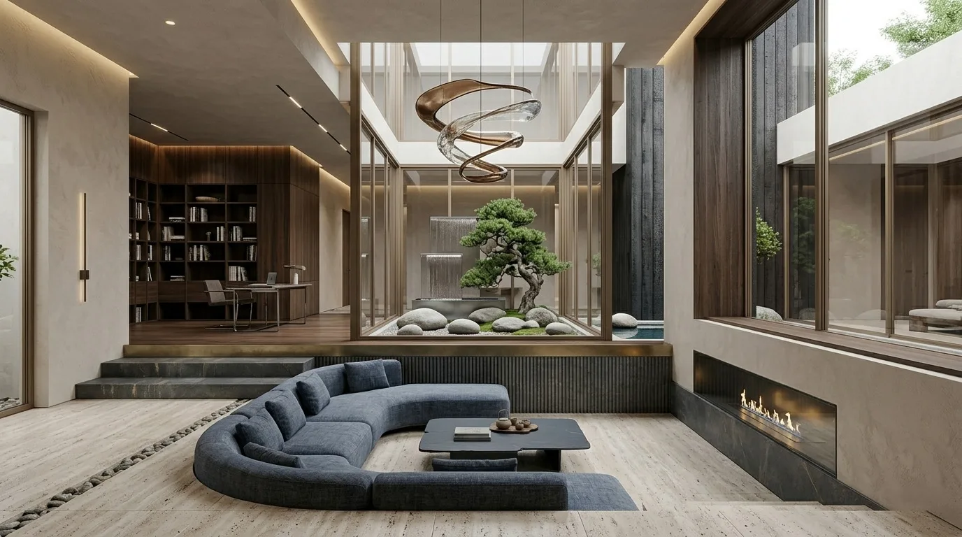 Ayna kullanımı, küçük su objeleri veya koyu mavi tonlar sakinlik hissi yaratır.
